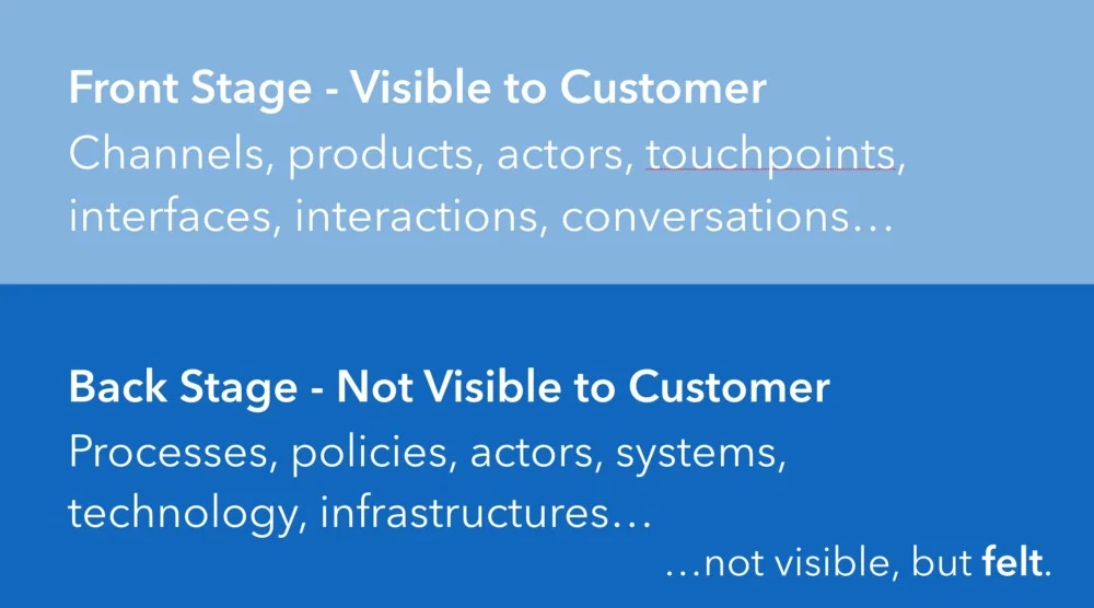 "This is crucial to understand in service design stage theory. What we can and can’t do is dictated by our behind the scenes. And yet, rarely does anyone apply any design thinking to it." Erik Flowers